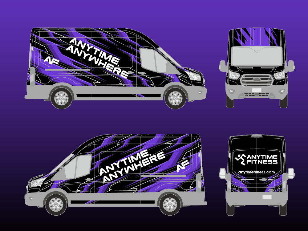 An aggressive and sporty wrap for one of Canada's biggest gyms. Designed for a Ford Transit.