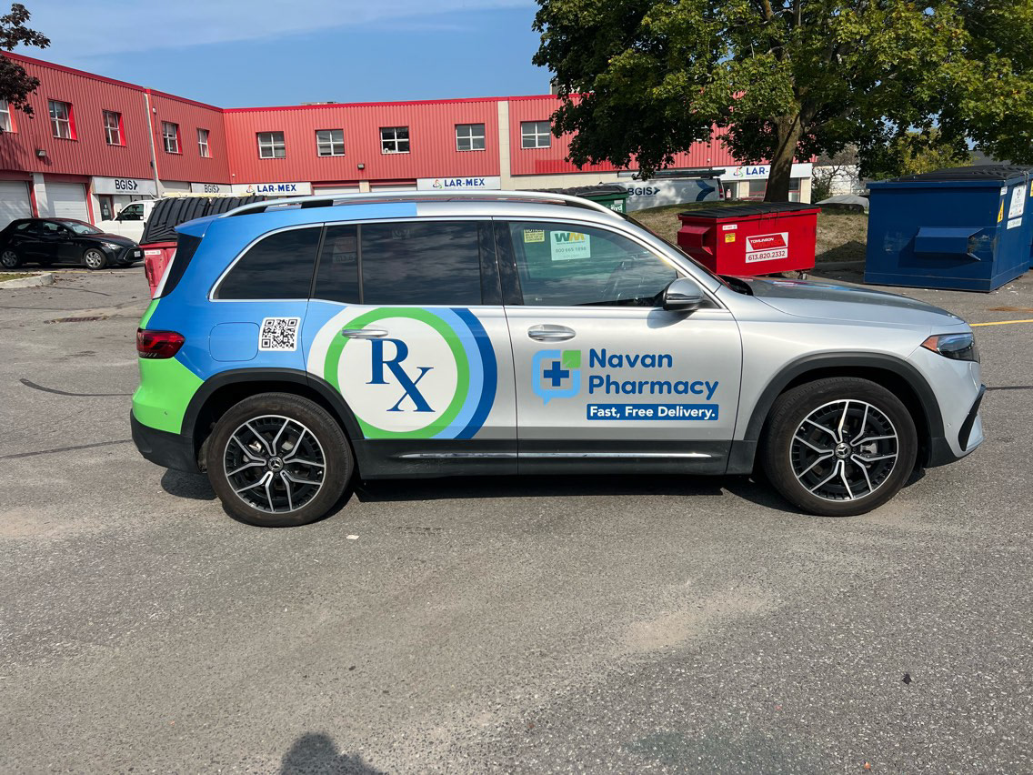 A partial wrap done for a local pharmacy. Sometimes a design looks a bit boring or simple in the mockup, but it really comes to life once it's installed on the vehicle!